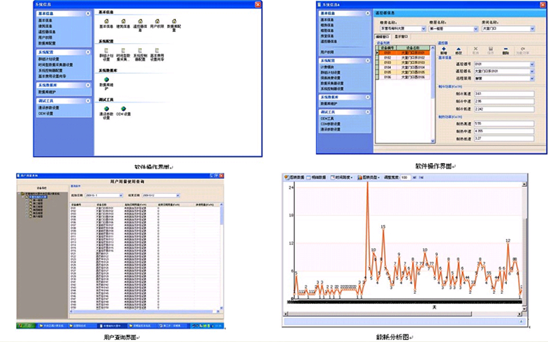 可根據用戶的設置,開關相應設備,自動轉入節能運行模式,根據用戶的要求對整個采暖季的運行數據進行采集分析,生成能耗分析圖。